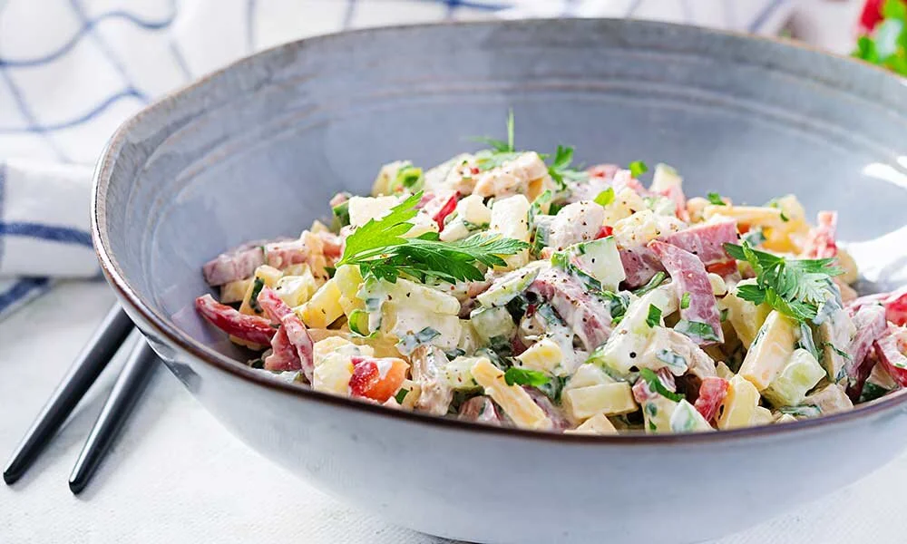 This is not your classic cucumber salad! We’ve added ham, cheese and red pepper to put a twist on the traditional.